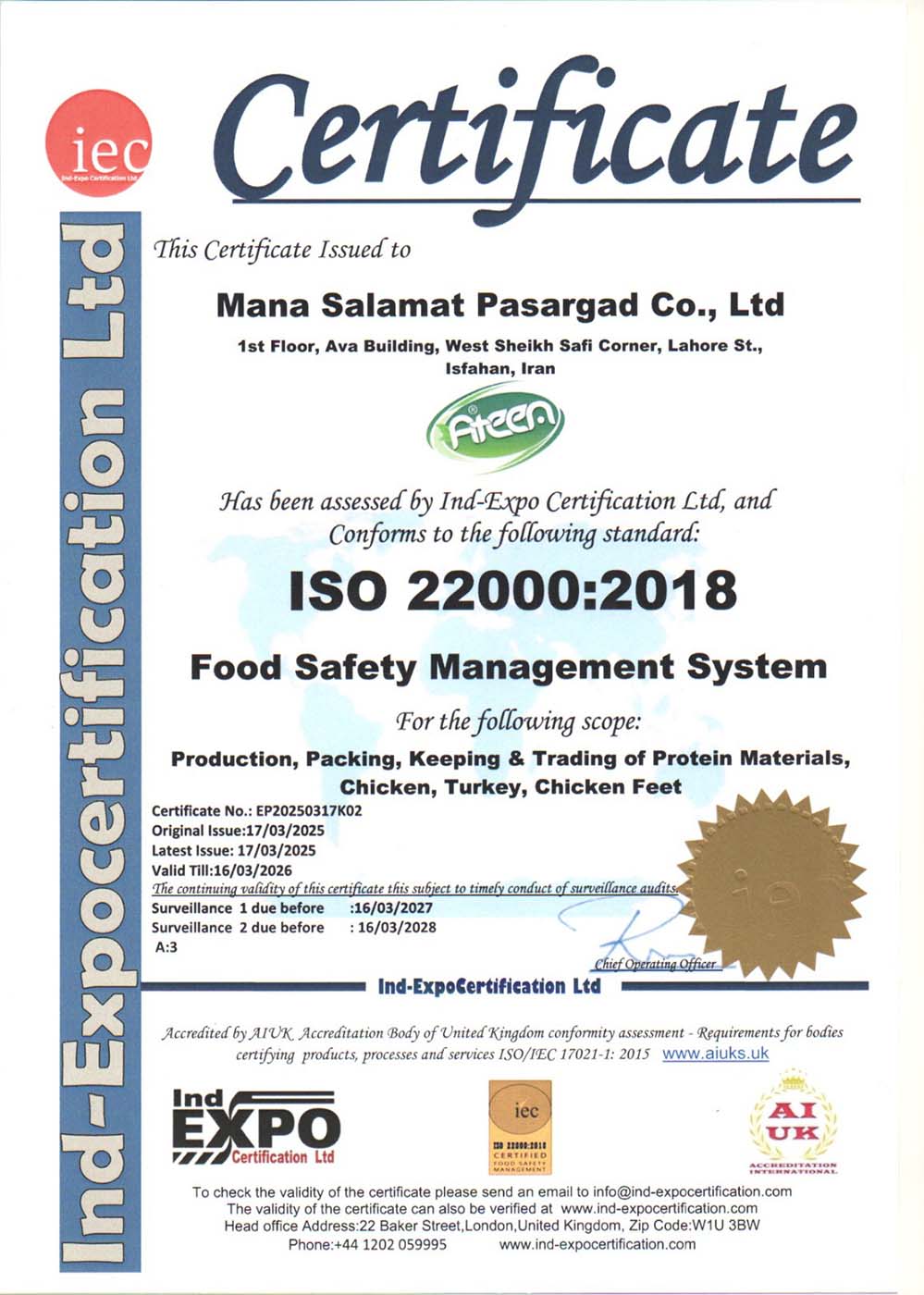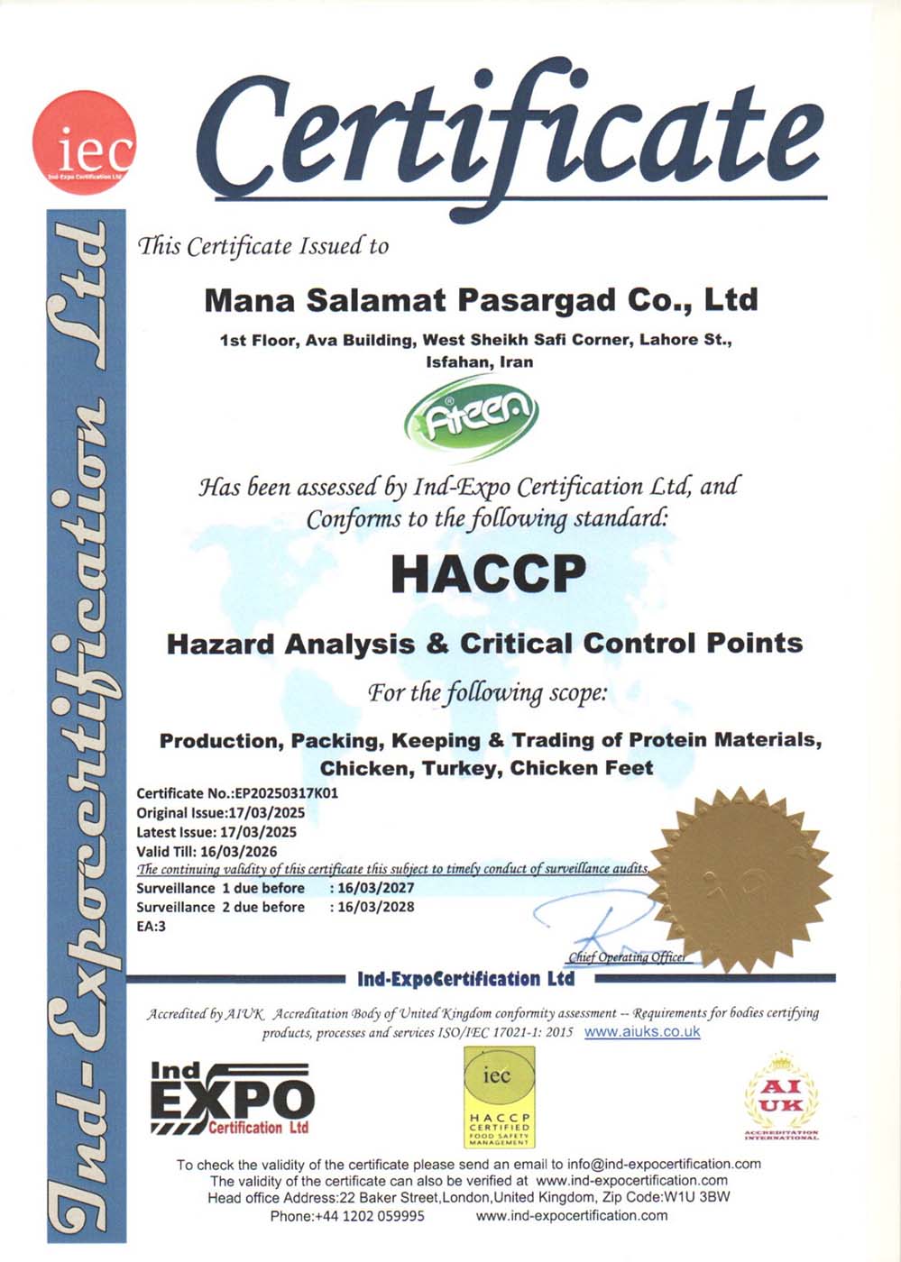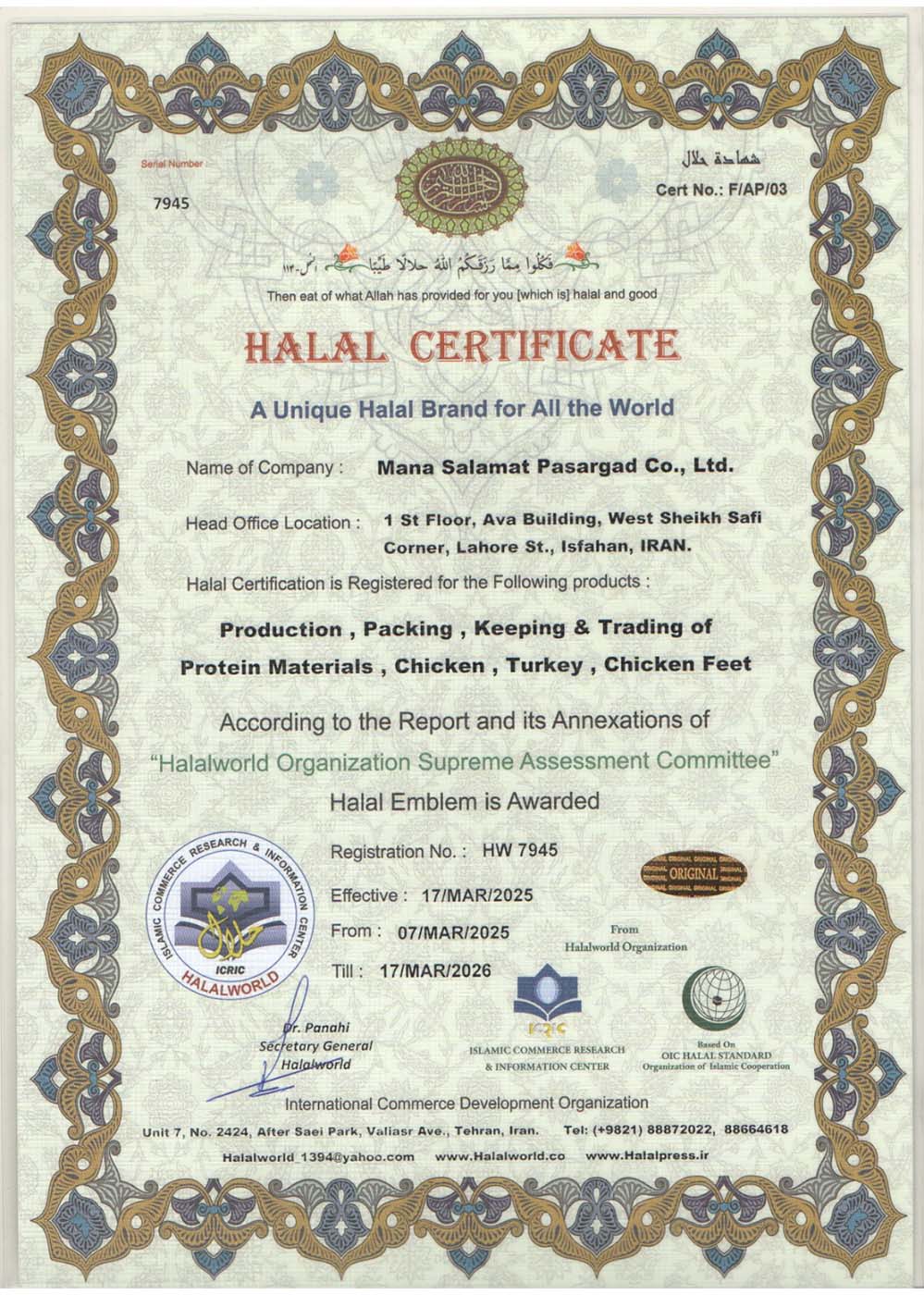 رعایت کامل استانداردهای حلال، ایمنی مواد غذایی و استانداردهای بین المللی مدیریت کیفیت